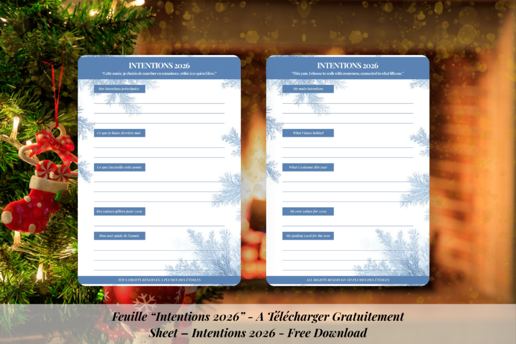 TĂ©lĂ©charge la feuille âIntentions 2026â, une page poĂ©tique pour poser tes rĂȘves, clarifier ton annĂ©e et ancrer tes souhaits en douceur.