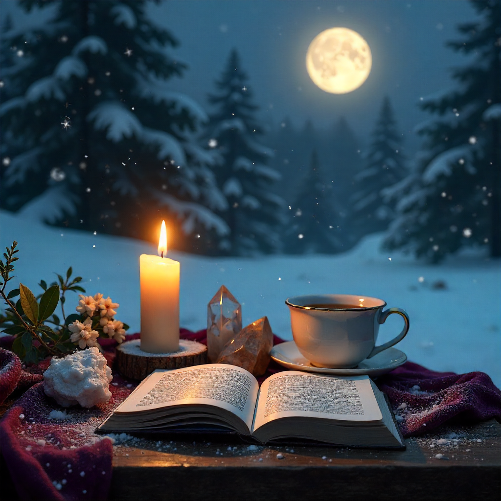 🌕 Create a sacred space : candle, crystal, open journal, warm tea.